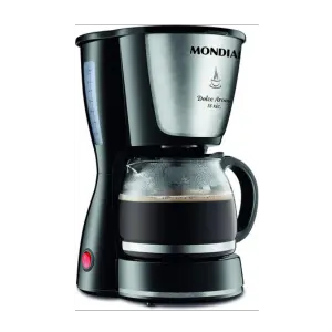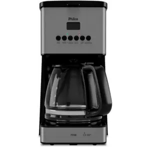 - Recursos: Timer programável, seletor de intensidade do café, função que indica o tempo desde o preparo, manter aquecido, corta-pingos, filtro permanente em nylon (removível e lavável), aviso sonoro